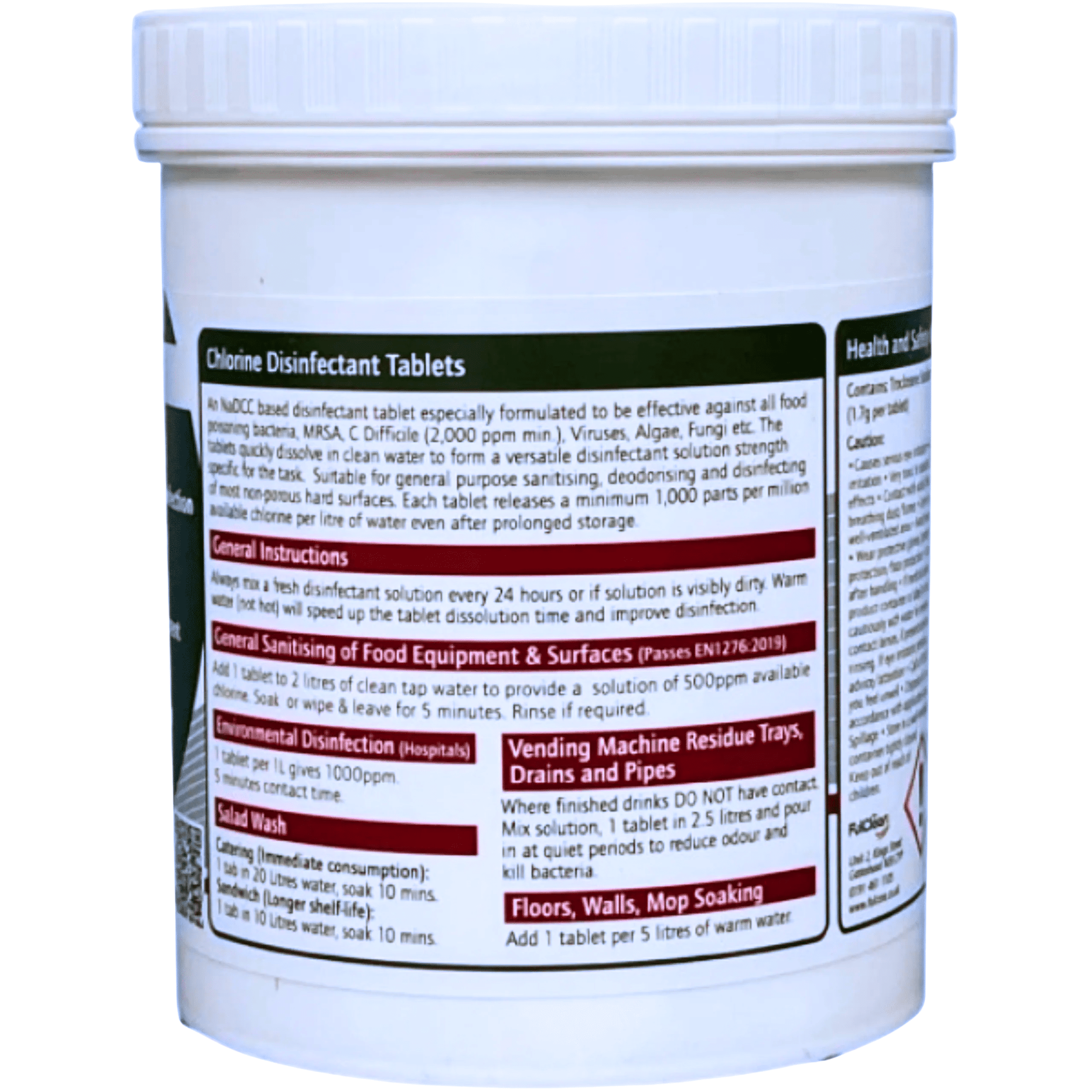 Detergent Chlorine Tablets are a safe and reliable way to give a measured dose of chlorine in solution for a one-stage sanitiser and can contribute to your due diligence programme. Unlike Liquid bleach, they do not degrade with storage and they have an extended shelf life of up to 5 years.