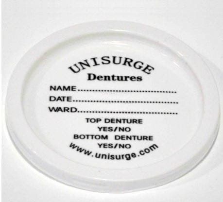 "The denture pot lid is a disposable lid that is used with the disposable denture pot for cleaning and storing dentures.