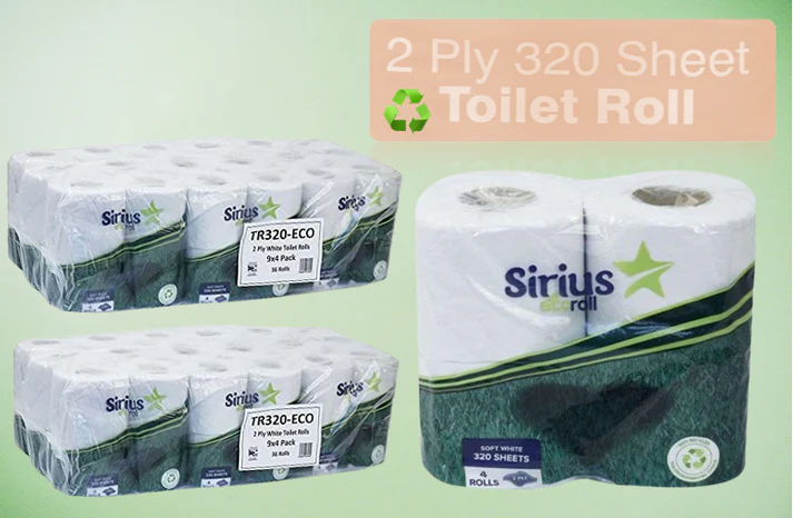 Eco Toilet Rolls 2 Ply WHITE 320 Sheet 9 X 4 Rolls