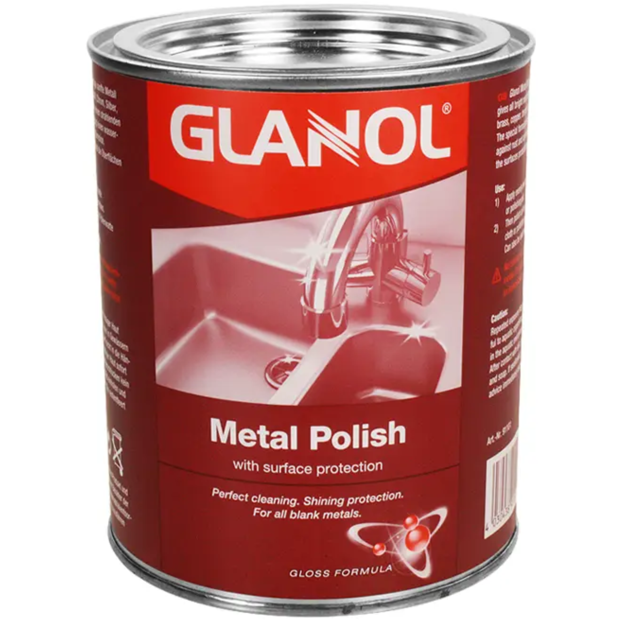 Suitable for metals including High Grade Steel, Silver, Brass, Copper, Bronze, tin, aluminium. Any soiling is removed gently and the surface is protected permanently. Gives all bright metal parts a high sheen finish- Material: Metal- Unit size: 1L