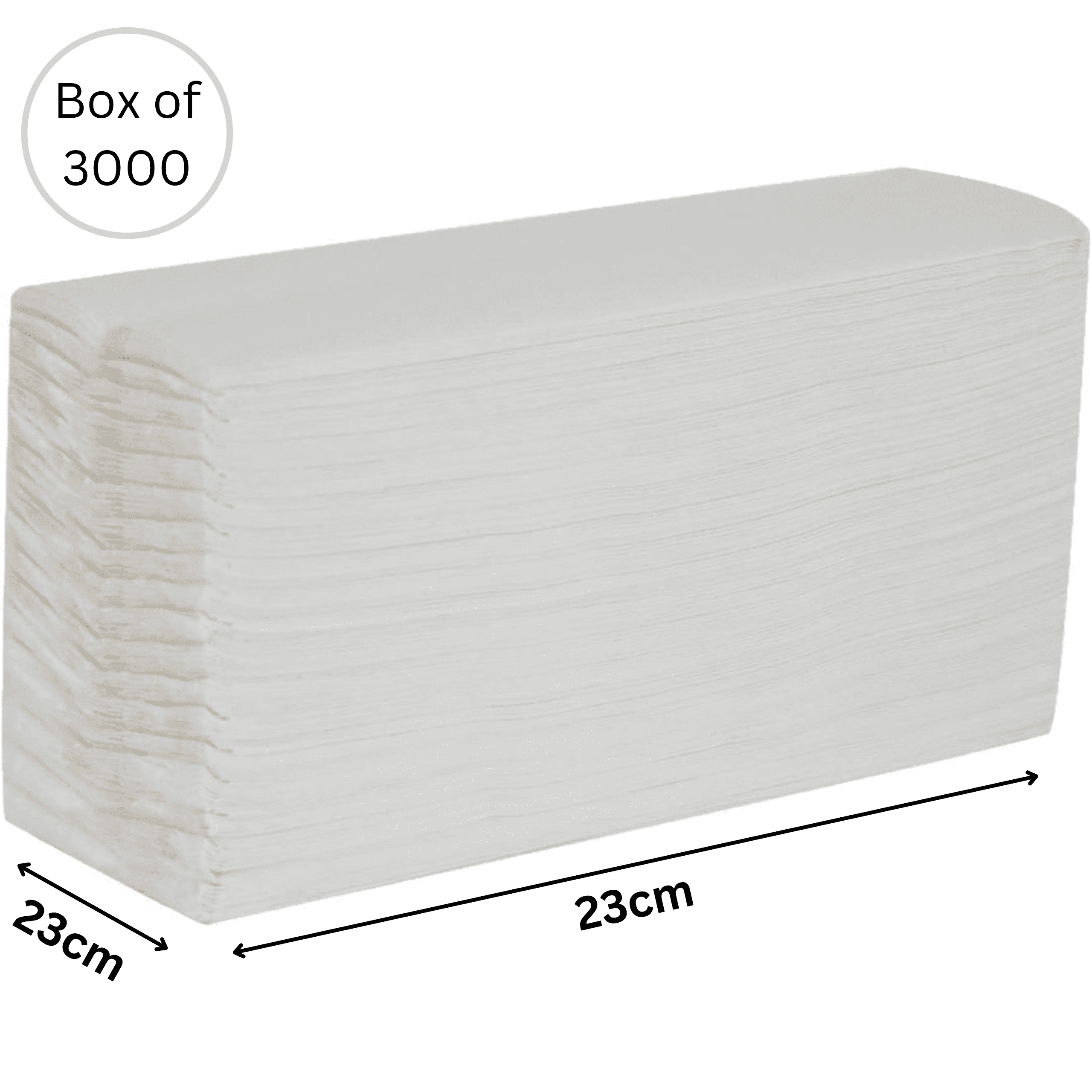 Hand Towels 2 Ply V-Fold WHITE LARGE 23x23cm X 3000 (400436)