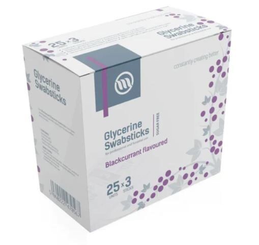 -These blackcurrant and Glycerin oral swab sticks refresh dry mouths of patients with restricted oral intake