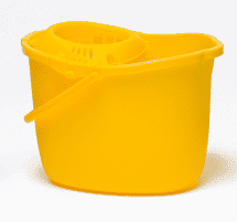 A sturdy polypropylene bucket with wringer to reduce spillage.