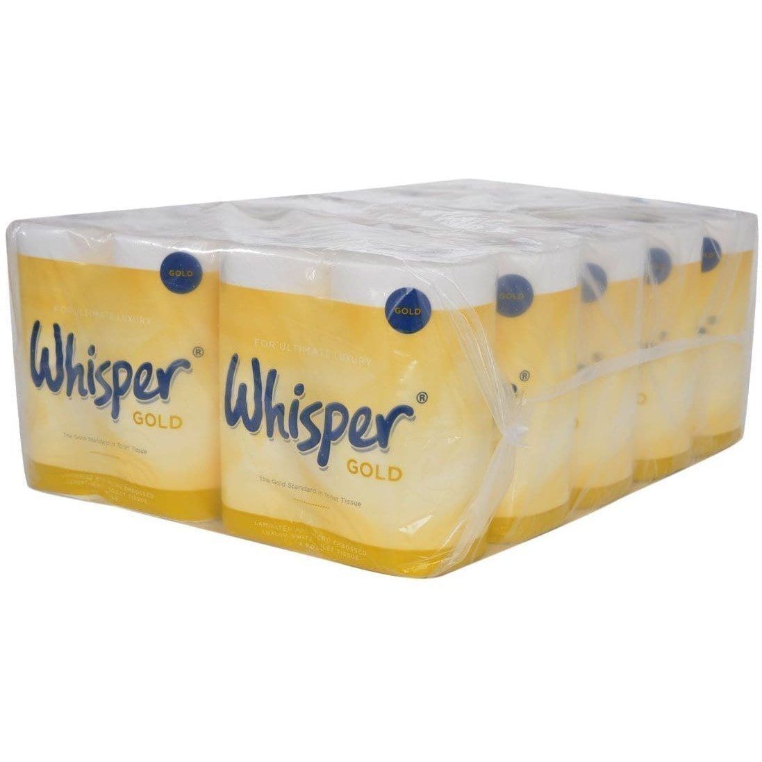 Whisper Gold is 3 ply premium toilet tissue that is stylish and luxurious to the touch; the gold standard in toilet tissue. It is manufactured from pure pulp and features a unique, contemporary embossment with lamination for exceptionally high quality.