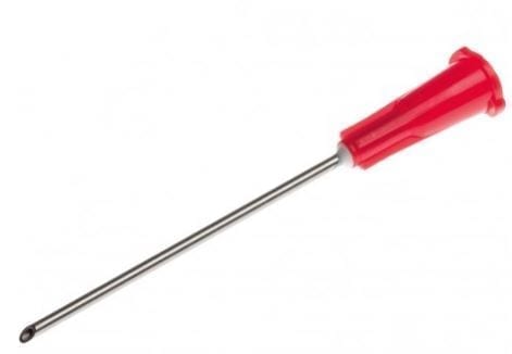The BD Blunt Fill safety draw-up needle is an 18 Gauge (Red) needle that is 40mm (1 Inch) with a 45 degree cut bevel and non-coring. The BD needle is sterile and latex free.