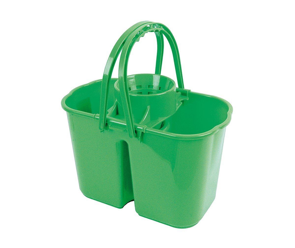 "A two section bucket with eight and six litre compartments and a central wringer, designed to separate clean and dirty water for improved hygiene. Heavy duty double handle for extra safety when carrying.