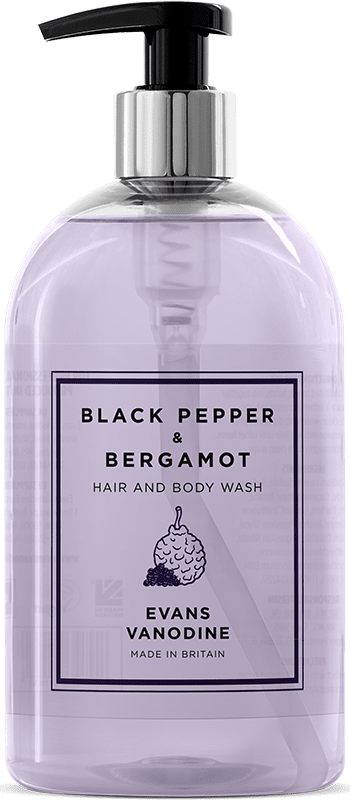 Evans Black Pepper & Bergamot soap is a moisturising, clear pale purple liquid for washing hands, hair and body. Contains a contemporary fresh perfume.