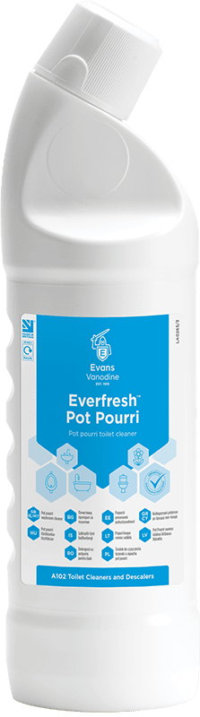 Evans Everfresh Pot Pourri Toilet Cleaner is a versatile washroom cleaner that will clean just about every surface effortlessly. Use it regularly on toilet bowls, urinals, sinks and washroom surfaces to keep them free of soiling and bacteria. A fresh Pot Pourri scent will leave your washrooms smelling clean and refreshing every time. This 1 litre bottle includes an angled nozzle for easier application.
