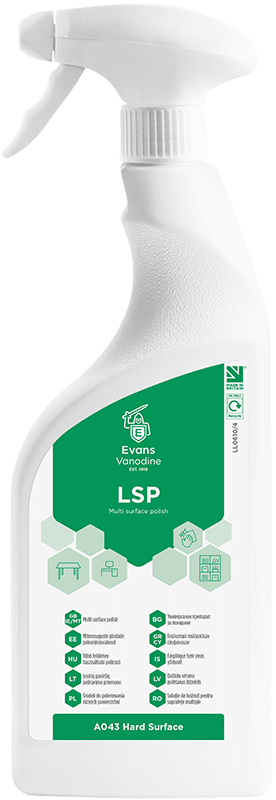 Evans Vanodine's L.S.P is a high quality, multi-surface liquid spray polish and cleaner with a pleasant perfume. Suitable for use on a variety of surfaces such as wood, veneer, laminate and stainless steel, Formica, chrome and even paintwork.