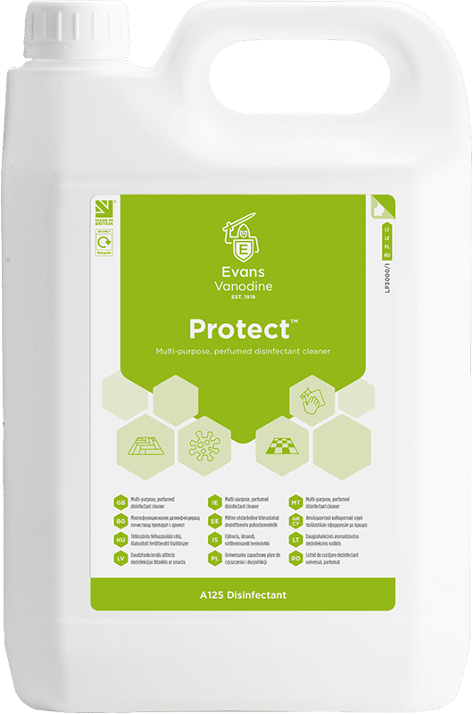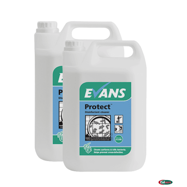 Clean and disinfect schools, hospitals, nursing homes, sports clubs and more with Evans Protect. It cleans and disinfects in one easy operation, reducing the risk of contamination and killing bacteria for a safer environment. This 5-litre bottle contains concentrated disinfectant for economical use, letting you vary the dilution for general cleaning or heavy-duty infection control. It leaves a fresh and clean scent behind.