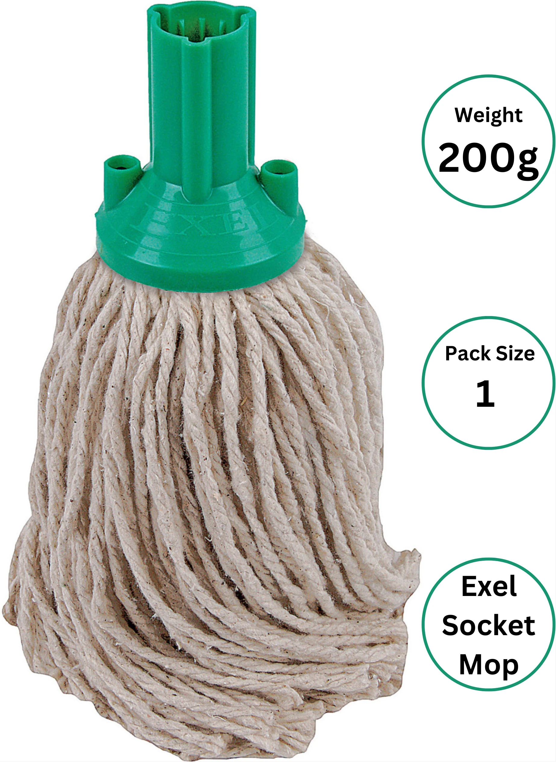 A traditional yarn mop with our Exel push fitting, designed to avoid the mop slipping on the handle whilst wringing. Absorbent PY yarn is suitable for smoother floor surfaces like laminate or lino flooring.- Unit size 200g