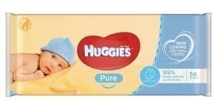 "HUGGIES Baby Wipes pure are softer for sensitive skin and help you care for your baby's delicate skin from the very start. These hypoallergenic baby wipes are dermatologically tested, and ideal for newborn skin. Fragrance free, alcohol free and parabens free, you can trust that you're giving your baby a gentle clean each and every time.