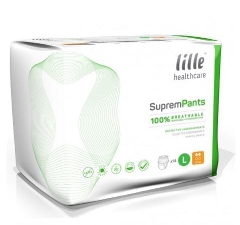 "Lille Suprem Pants is a disposable pull up pants for moderate to heavy urinary incontinence.