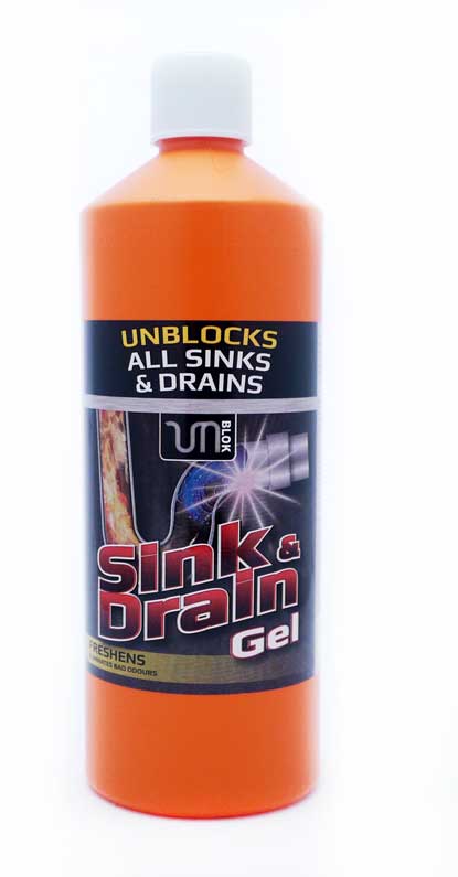 Unblok sink & drain gel is a superbly efective sink sanitizer and Unblocker, it's powerful formula will cut through grease, dirt & soap scum, leaving kitchen and bathroom sinks clean and fresh. Used regularly sink & drain gel will stop sinks blocking.